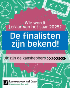 Hoera! Uit honderden inzendingen gekozen…staat onze eigen meester Chris Beijer, samen met 2 anderen, in top 3 van de finale van Leraar Van Het Jaar PO 2025!